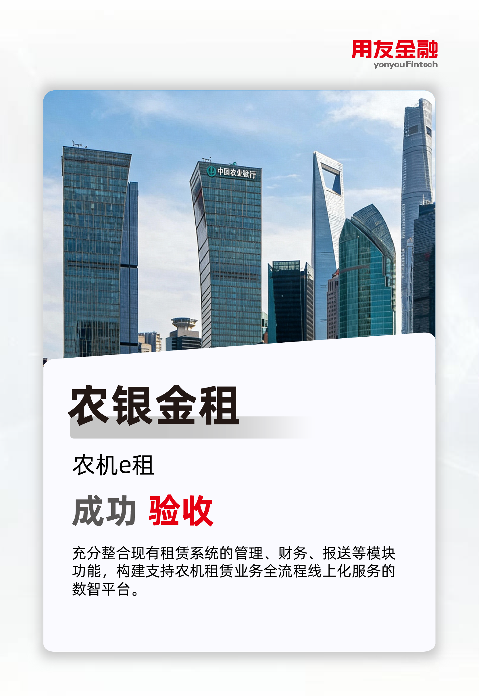 农银金租作为中国农业银行全资子公司,自成立以来始终聚焦“三农”、航空、新能源、科创制造等重点领域,致力于打造专业特色鲜明、竞争优势突出的一流金融租赁公司。“农机e租”平台是农银金租积极响应国家乡村振兴战略、践行普惠金融理念的重要举措。
