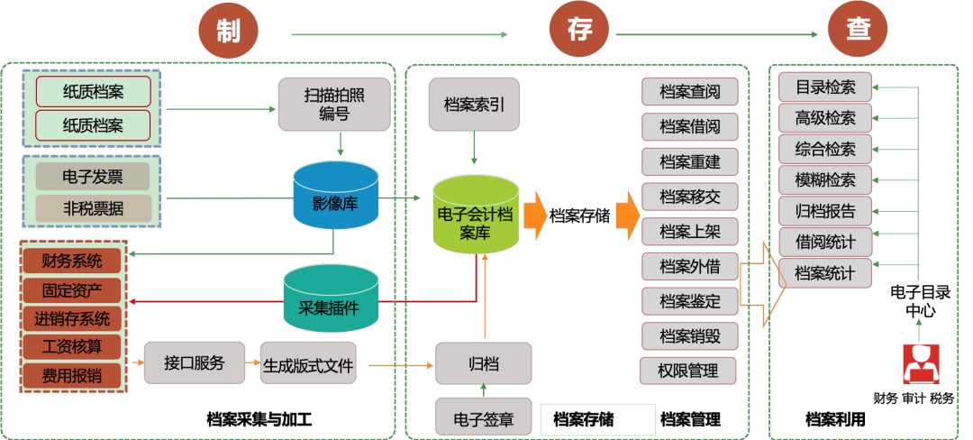 建立电子会计档案系统,通过接口或者其他方式,把需要归档的数据采集过来;按照归档的规则对需要归档的文件进行整理上架;将档案资料存储于系统中,再加上一些流程管理及权限管理,保障整个资料的安全性;档案形成后,方便内部及外部的利用实现会计电子档案生成、调阅、查看、归档、销毁的全生命周期管理,逐步实现会计资料的全面电子化归档和管理。