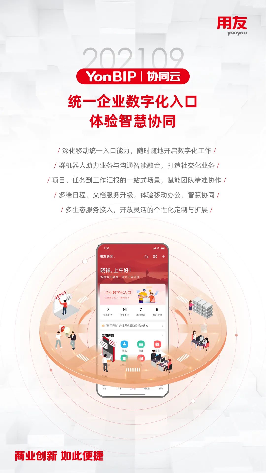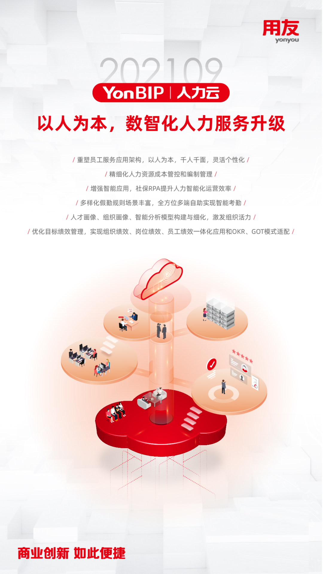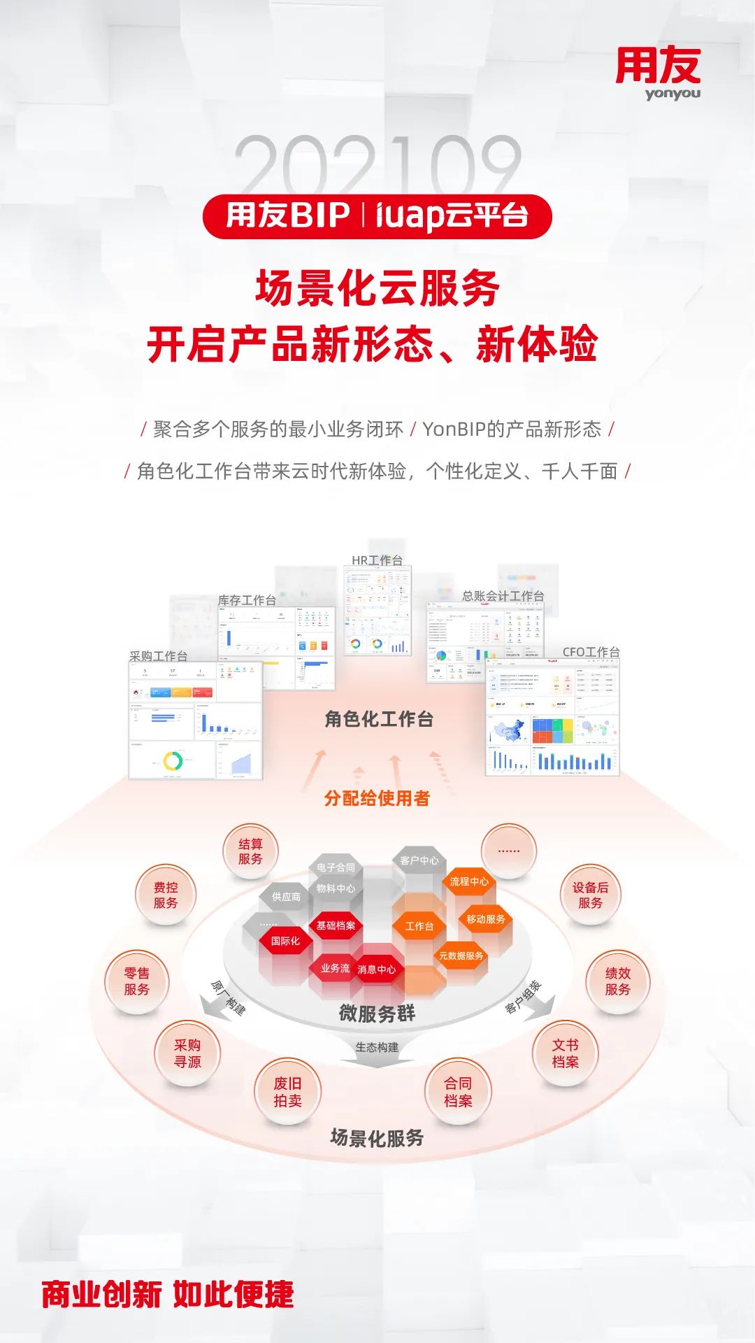 近日,用友推出YonBIP商业创新平台202109旗舰版公有云新版本 ,这是在202102版本发布的基础上,YonBIP的全领域升级产品,包含一体化融合的PaaS、SaaS、BaaS、DaaS多种形态的云服务,全面升级平台能力,完善和优化企业核心SaaS服务场景,更好地助力推动企业数智化转型或数智化原生发展,帮助企业实现敏捷商业创新的愿景!