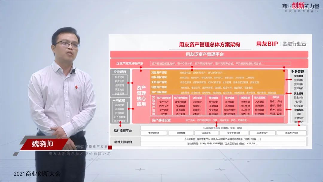 用友实物资产专家魏晓帅表示,随着企业数智化的浪潮汹涌而来,用友结合金融行业资产管理数智化转型的诉求,全力打造涵盖金融行业固定资产、低值资产、无形资产、股权资产等在内的泛资产数智化管理解决方案,并利用移动化和智能化技术,赋能金融行业的资产管理提升。