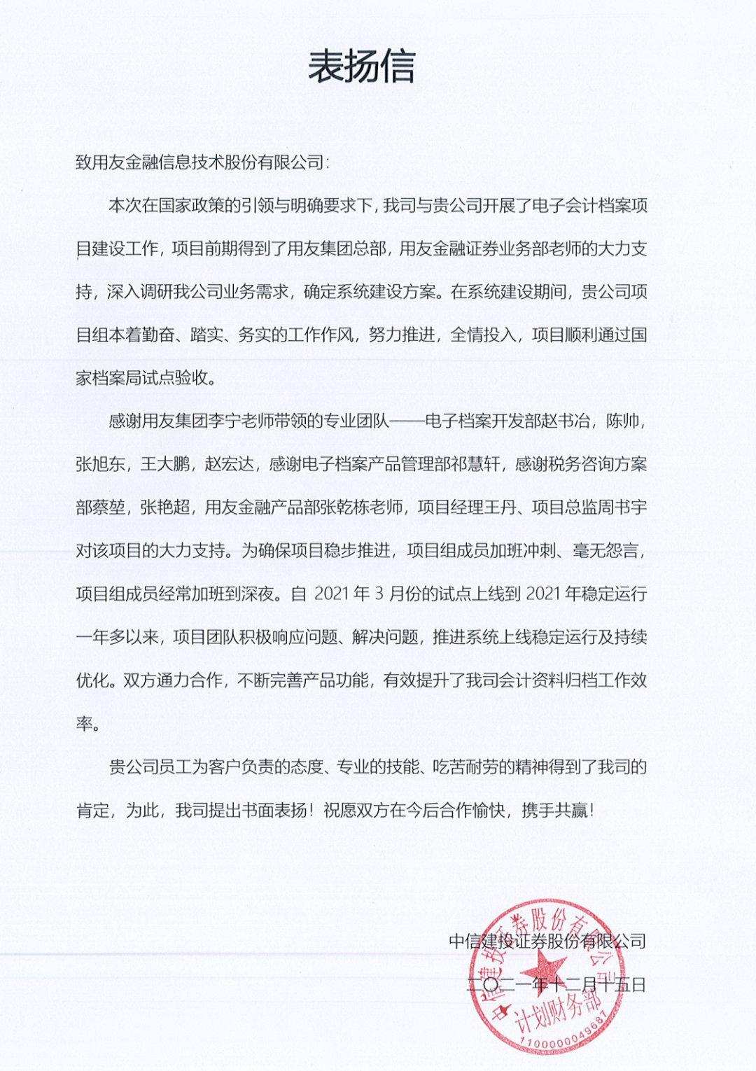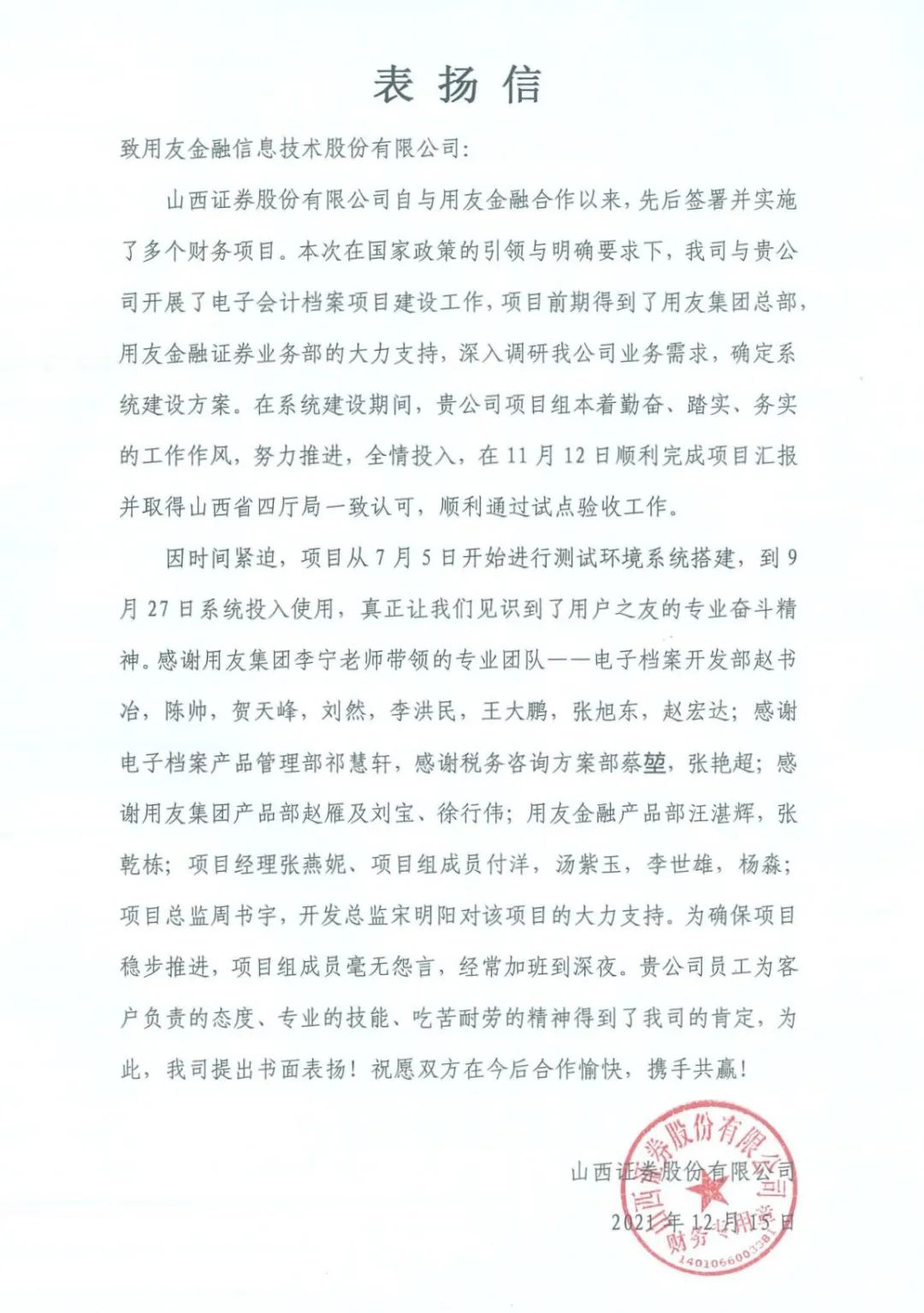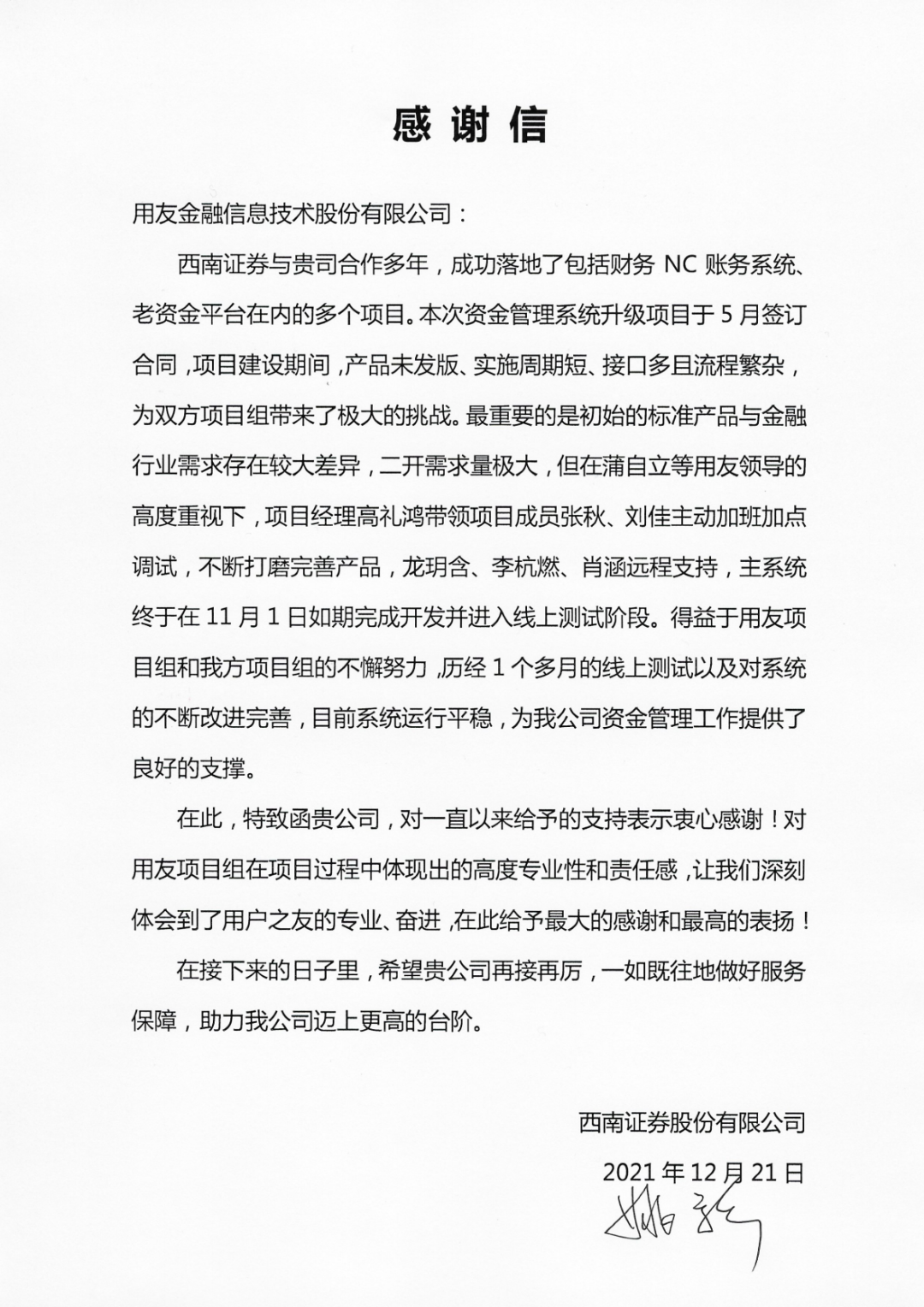 风雨征程,见证着各个项目的孵化,咨询、研发、测试、上线,数个日日夜夜的无私奉献,用户和米兰官方版网站登录入口-米兰(中国) 亲如一家,共同进退,项目的完成正因为有用户们的全心投入与支持,在大家共同努力下,我们实现了一个个业务功能齐全、技术先进、运行稳定的平台系统,提高业务办理效率,提升信息科技水平,赋能公司业务高质量发展,米兰官方版网站登录入口-米兰(中国) 在收到“朋友”感谢信的同时也在感激和大家相处的每一个瞬间!