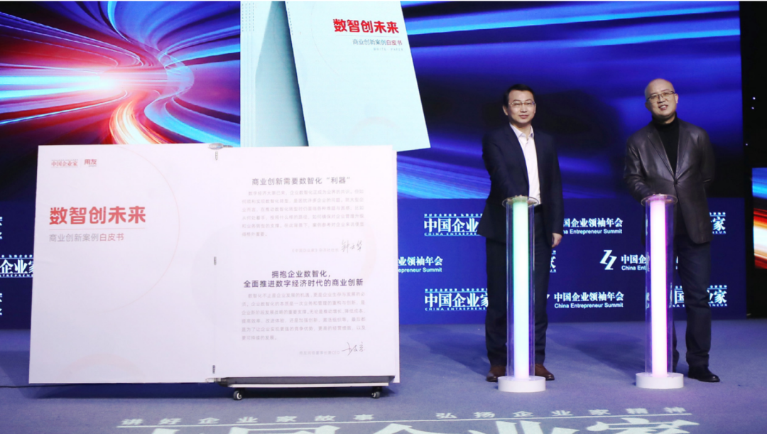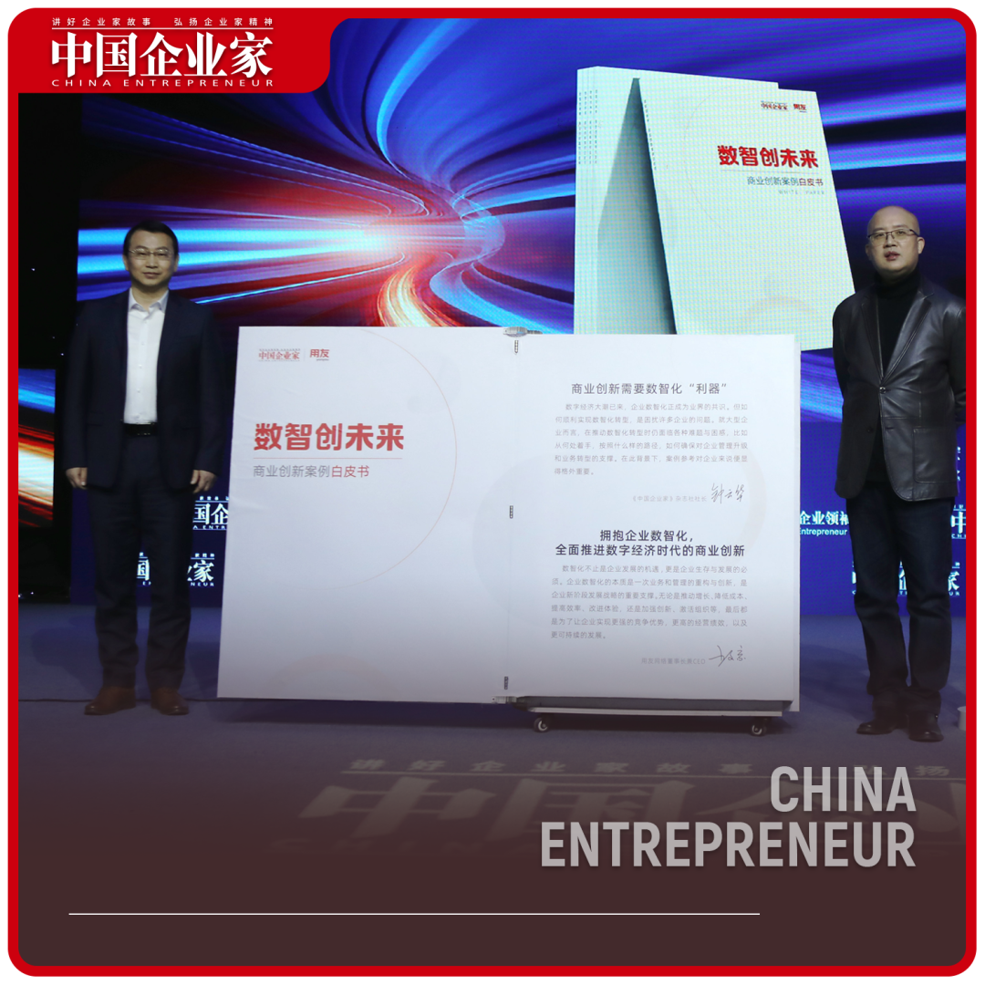 为帮助更多企业数智化转型,充分发挥数智技术在企业发展中的作用,用友和《中国企业家》共同打造了《数智创未来——商业创新案例白皮书》,并于12月10日在《中国企业家》杂志社举办的2022第二十届中国企业领袖年会上隆重发布。