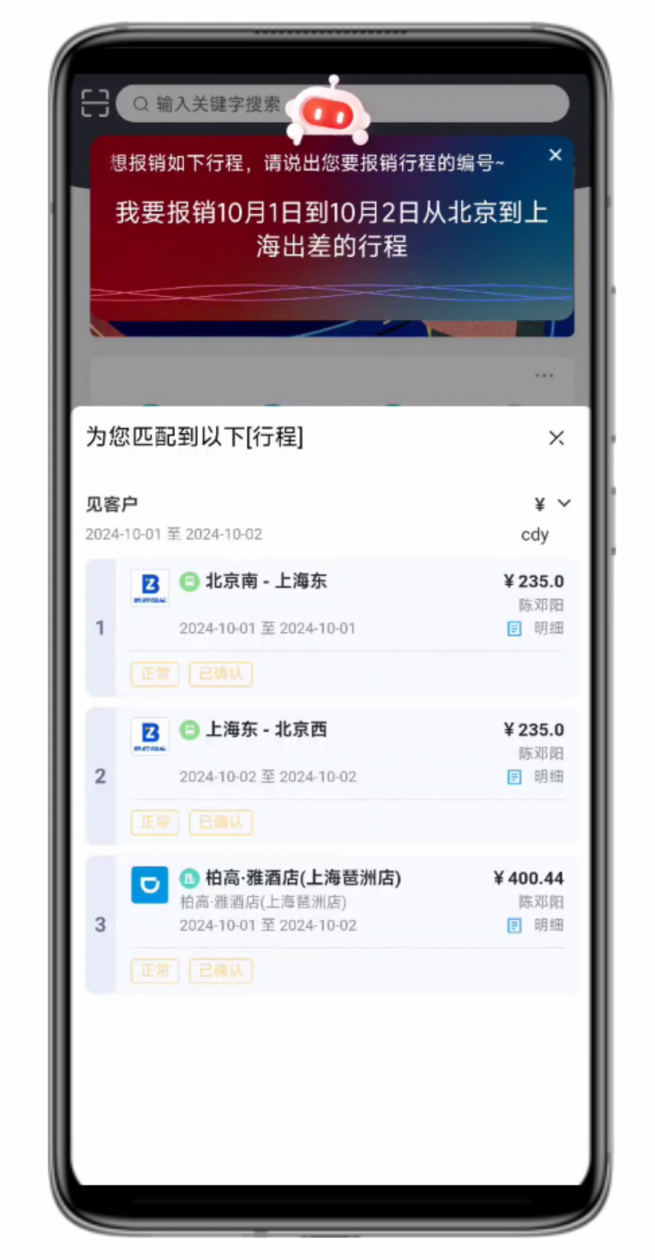 三期我们将推出智能商旅预订功能,通过语音对话自动预订商旅出行机票、火车票、酒店等,进一步提升小融业务能力,实现“一站式移动商旅和数智报销”。