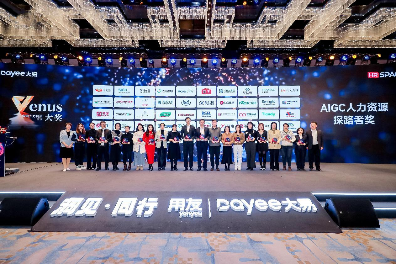 2024中国人力资源Venus大奖由用友大易联合HR SPACE主办,评审委员会历经一个半月的遴选,最终颁发了「2024数智招聘创新实践奖」、「2024AIGC人力资源探路者奖」、「2024雇主品牌经营典范奖」、「2024校园招聘卓越实践奖」、「2024人力资源数字化年度领军人物」五大奖项,并在活动现场正式公布获奖榜单。