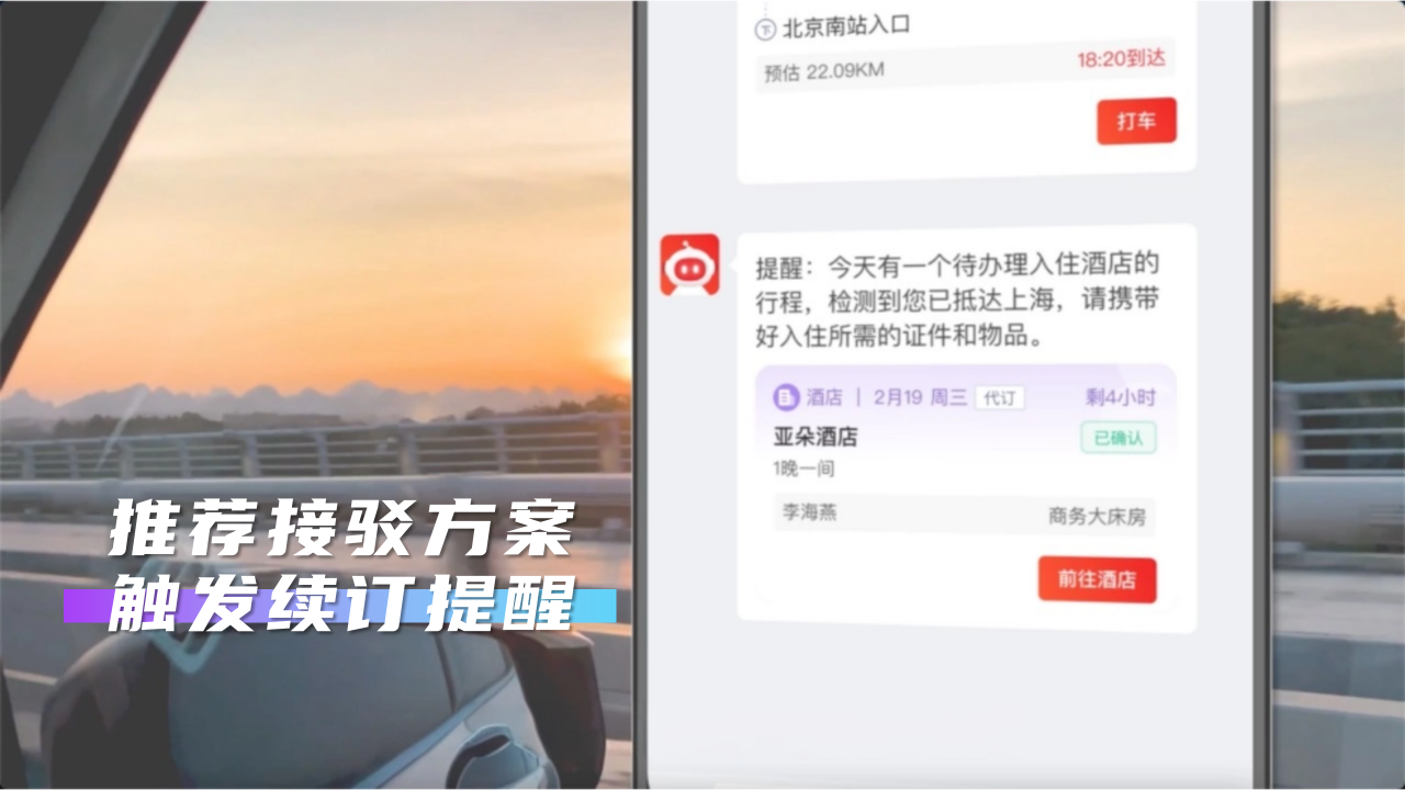 基于AI空间决策模型,自动推荐临近办公地的接驳方案;酒店退房前自动触发续订提醒。