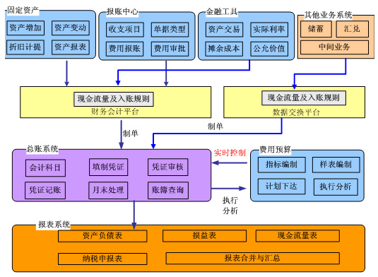 特色一:保持核心系统稳定的前提下,适应新准则的要求为了适应新会计准则的要求,如果逐个改造各个核心业务系统,风险是非常大的。在用友金融公司专家的建议下,通过建立中间对照系统,解决两套系统科目、币种、机构代码、日期、以及现金流量规则的问题。把各业务系统内科目级数据对应导入用友总账系统中,根据管理和核算的需要来确定每个系统是导入流水还是汇总数据。