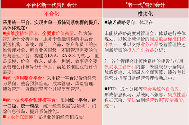 与传统的“第一代管理会计系统”相比,平台化新一代管理会计具有非常鲜明的优势: