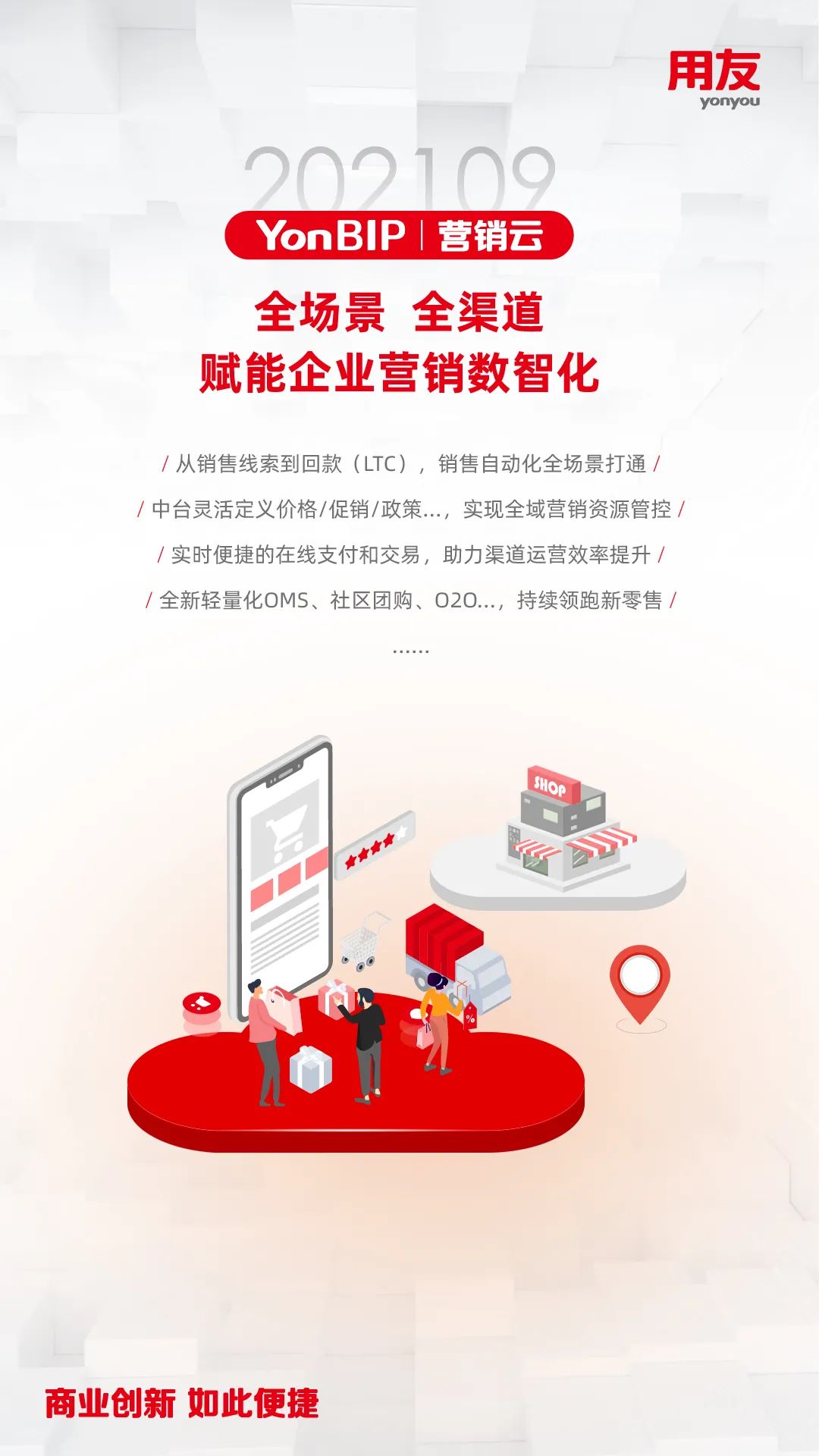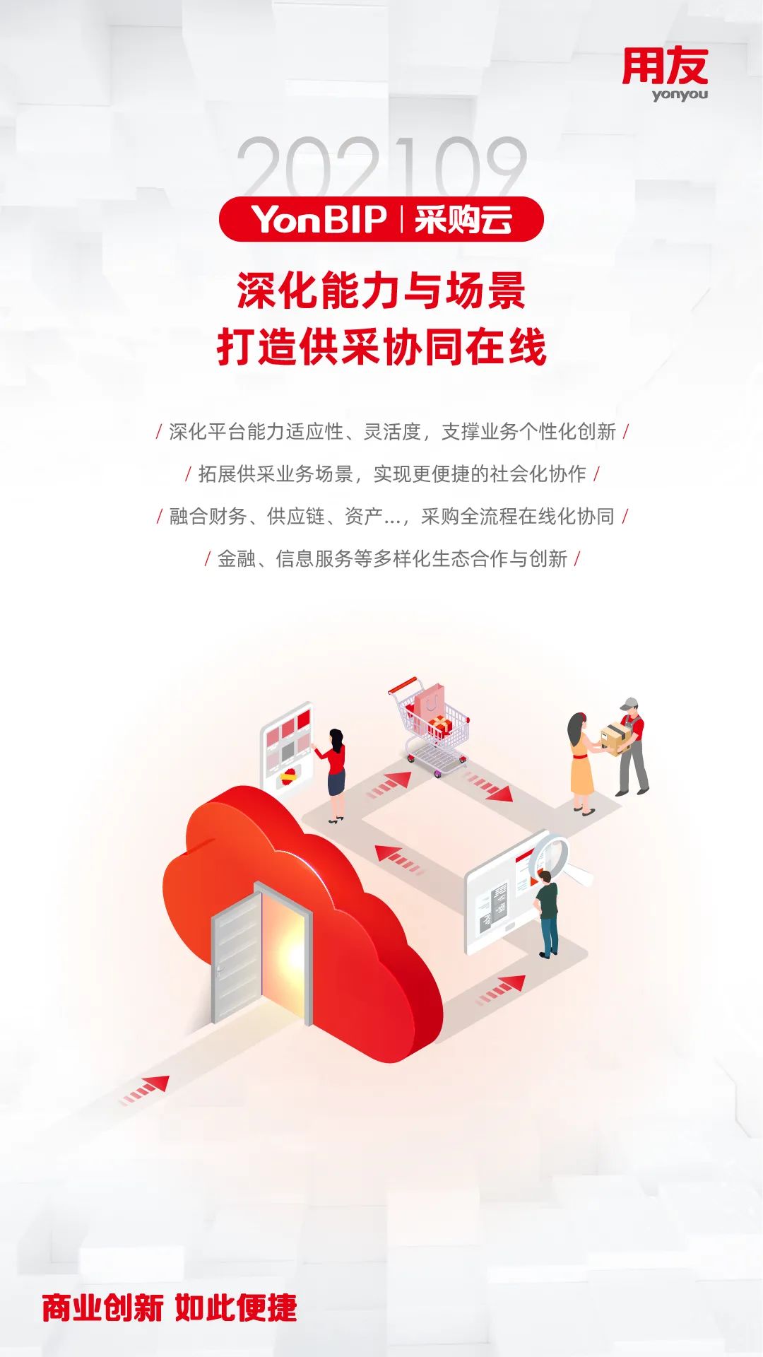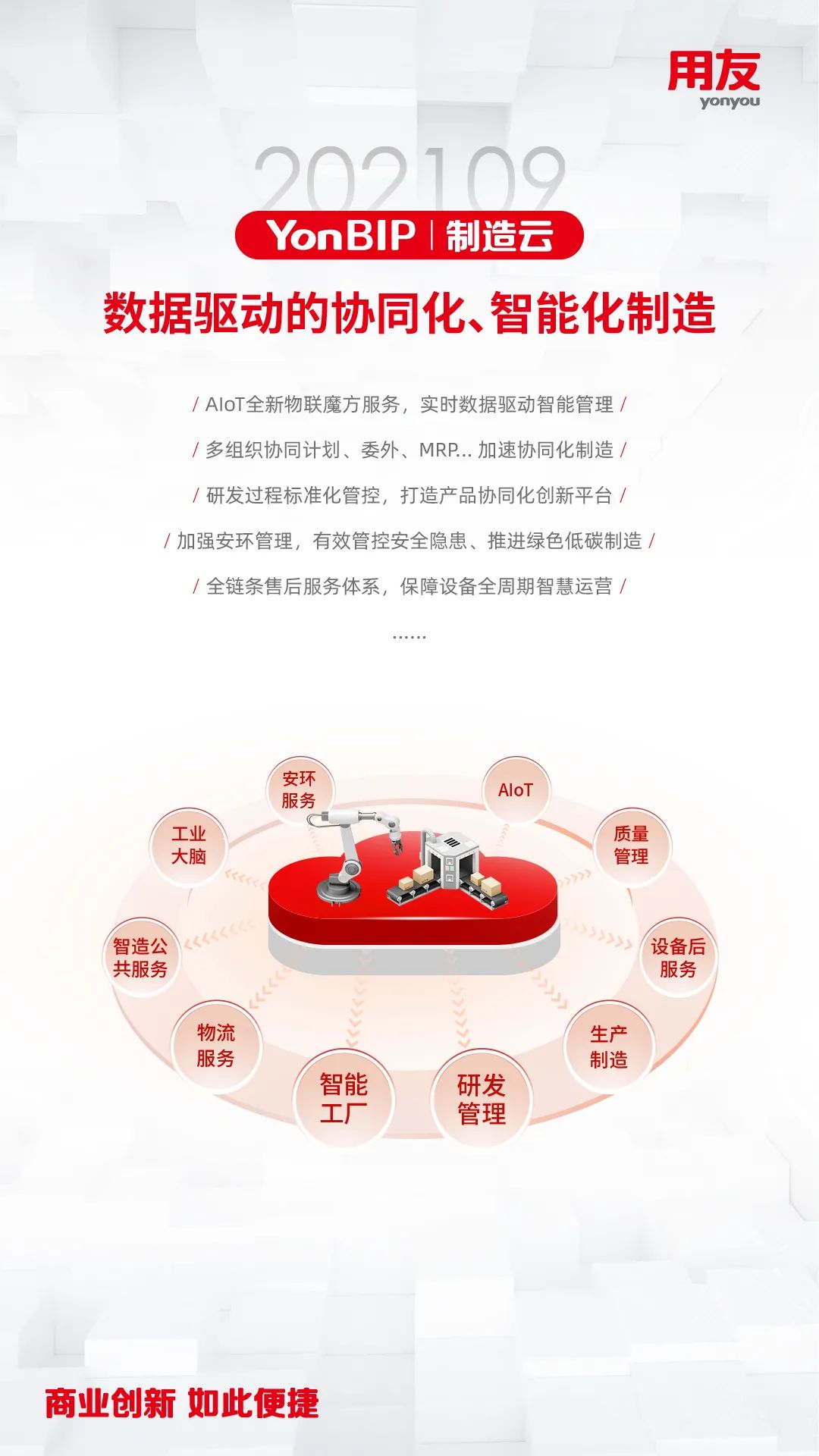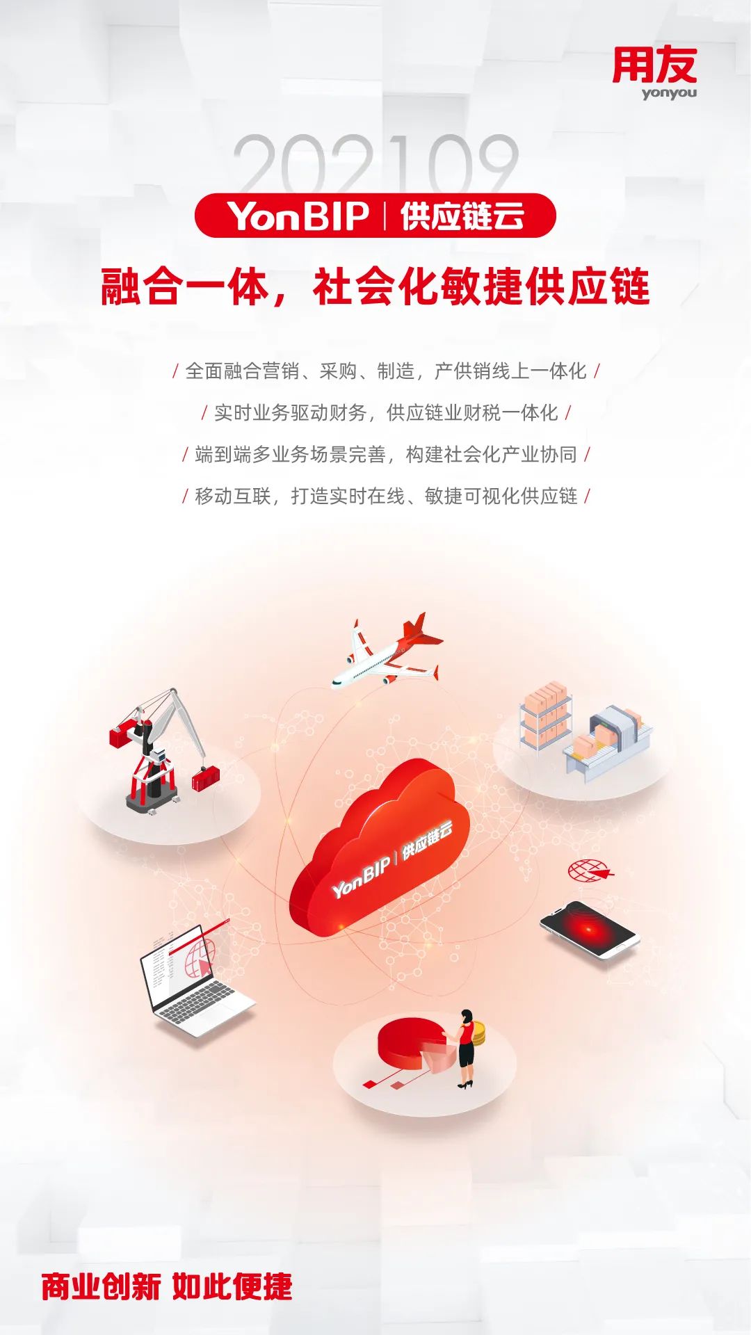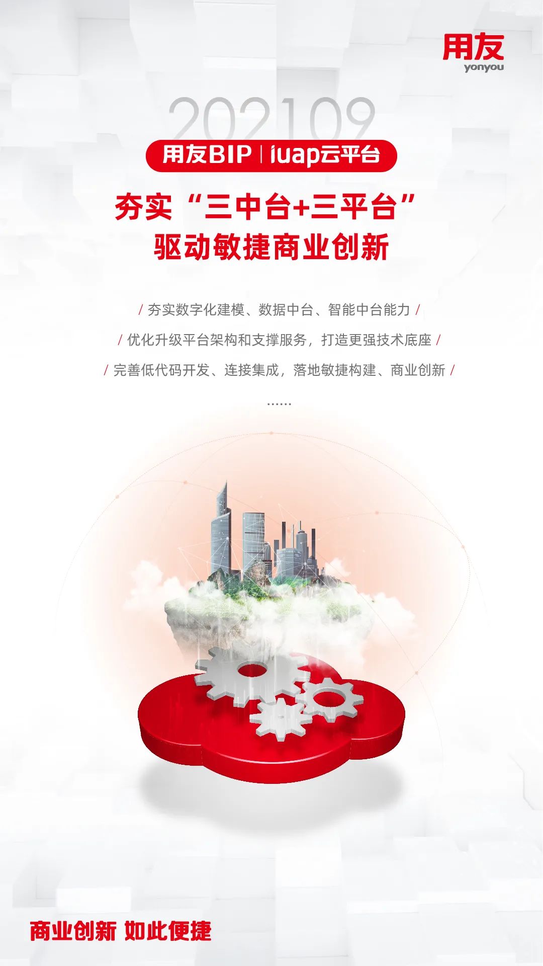 近日,用友推出YonBIP商业创新平台202109旗舰版公有云新版本 ,这是在202102版本发布的基础上,YonBIP的全领域升级产品,包含一体化融合的PaaS、SaaS、BaaS、DaaS多种形态的云服务,全面升级平台能力,完善和优化企业核心SaaS服务场景,更好地助力推动企业数智化转型或数智化原生发展,帮助企业实现敏捷商业创新的愿景!