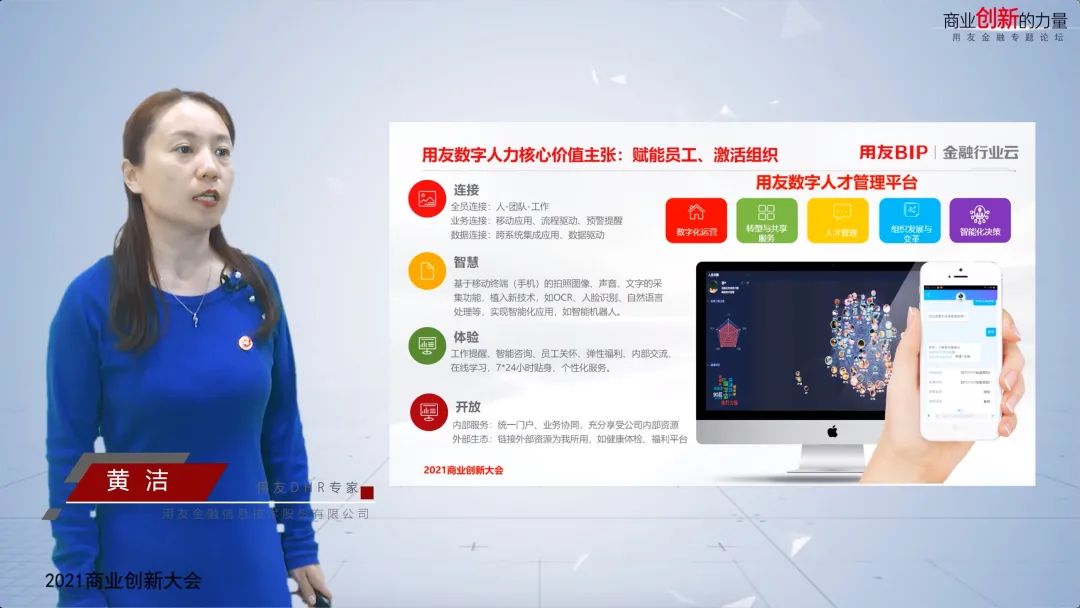 用友DHR专家黄洁提出,在国家大力提倡金融科技创新的时代背景下,金融行业极积极把握数字经济发展所形成的新投资机会,寻求数字化转型之道,用友数智人力应用全景,助力HR全面智能化,强化HR的组织能力价值导向,重塑人才价值主张,赋能员工,激活组织。