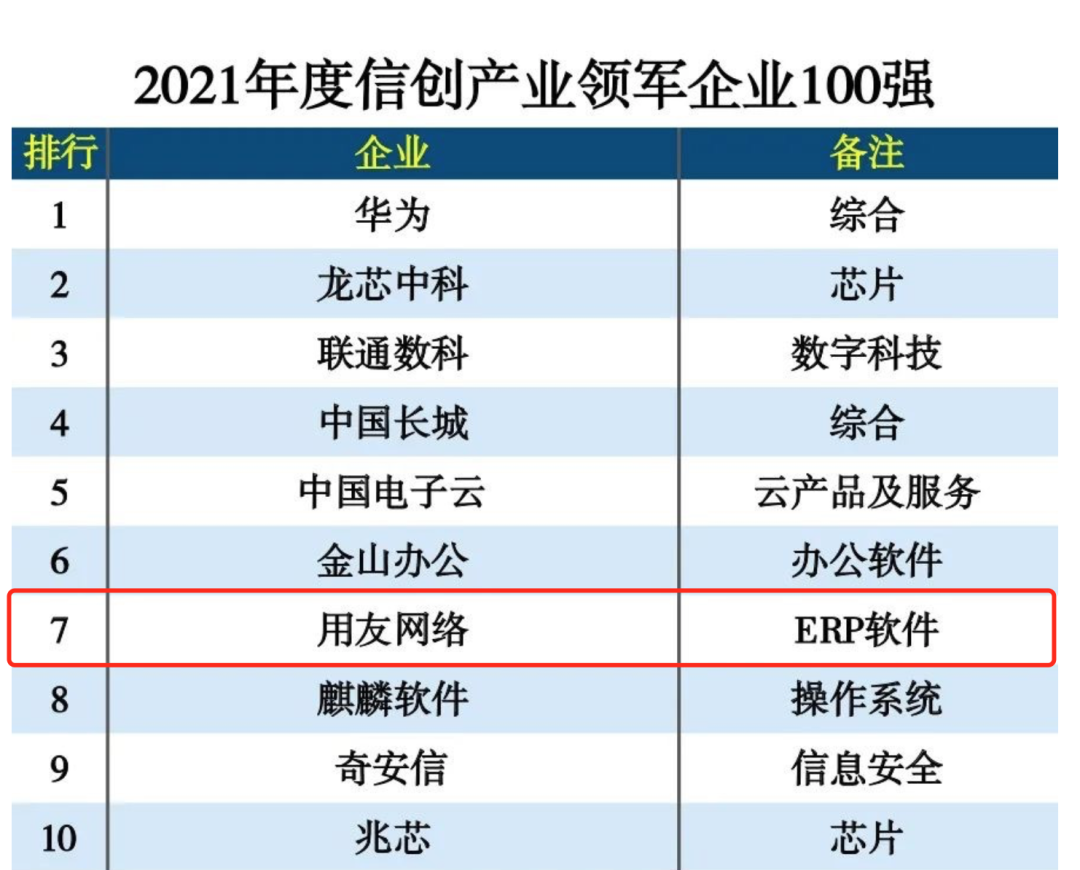 12月28日,由中国科学院旗下权威媒体《互联网周刊》评选的“2021信创产业领军企业100强”发布,用友凭借在信创产业中的综合实力及影响力,强势入选榜单前10!