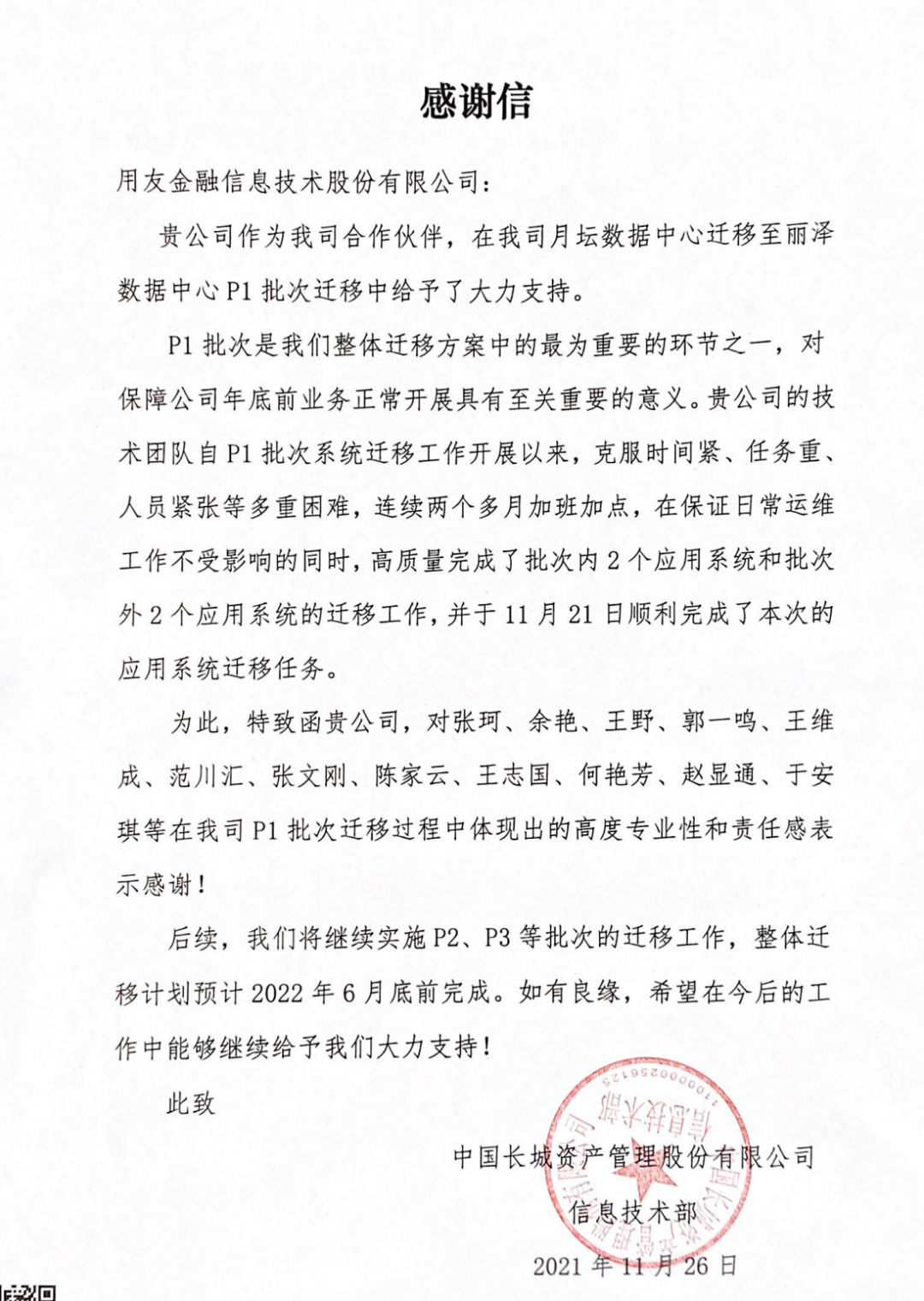 风雨征程,见证着各个项目的孵化,咨询、研发、测试、上线,数个日日夜夜的无私奉献,用户和米兰官方版网站登录入口-米兰(中国) 亲如一家,共同进退,项目的完成正因为有用户们的全心投入与支持,在大家共同努力下,我们实现了一个个业务功能齐全、技术先进、运行稳定的平台系统,提高业务办理效率,提升信息科技水平,赋能公司业务高质量发展,米兰官方版网站登录入口-米兰(中国) 在收到“朋友”感谢信的同时也在感激和大家相处的每一个瞬间!