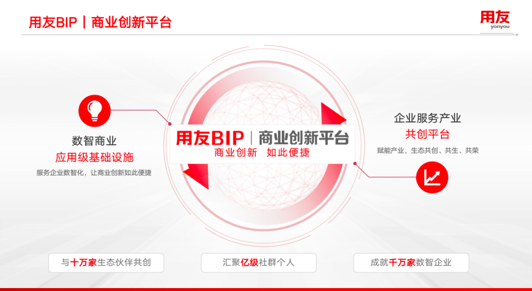 用友新一代产品——用友BIP(用友商业创新平台),是数智商业的应用级基础设施和企业服务产业的共创平台。用友BIP是用友战略投资倾力打造,面向全球范围数智化市场的大国重器,众多五百强企业选择用友BIP作为实现企业数智化的平台底座或核心应用系统。