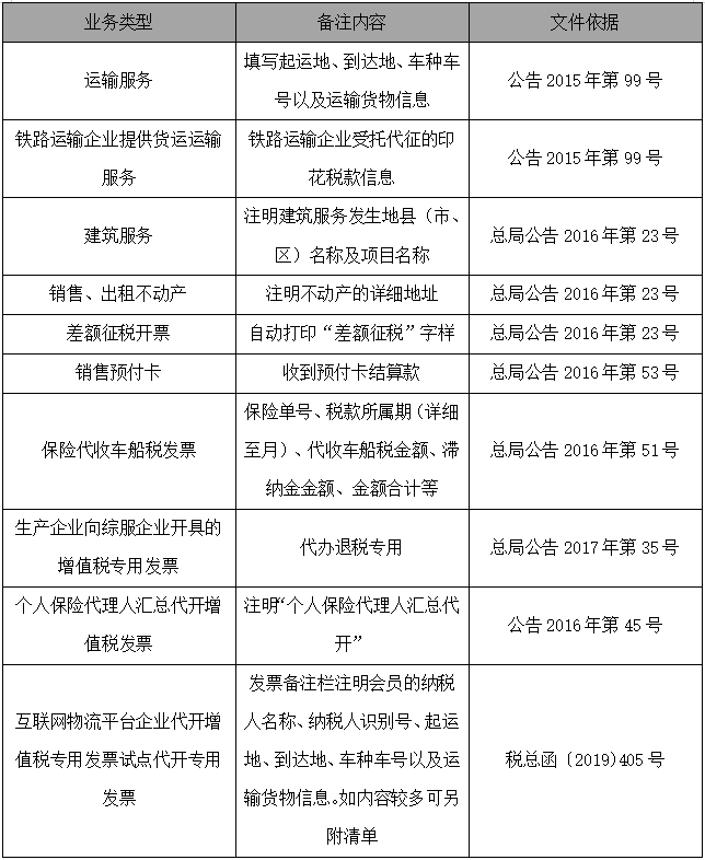 有哪些特定业务发票必须填写备注栏?为大家总结如下:
