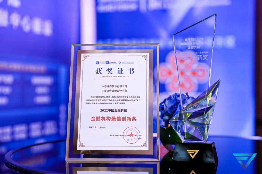 参与打造的中泰证券管理会计系统荣膺“年度金融机构最佳创新奖”!