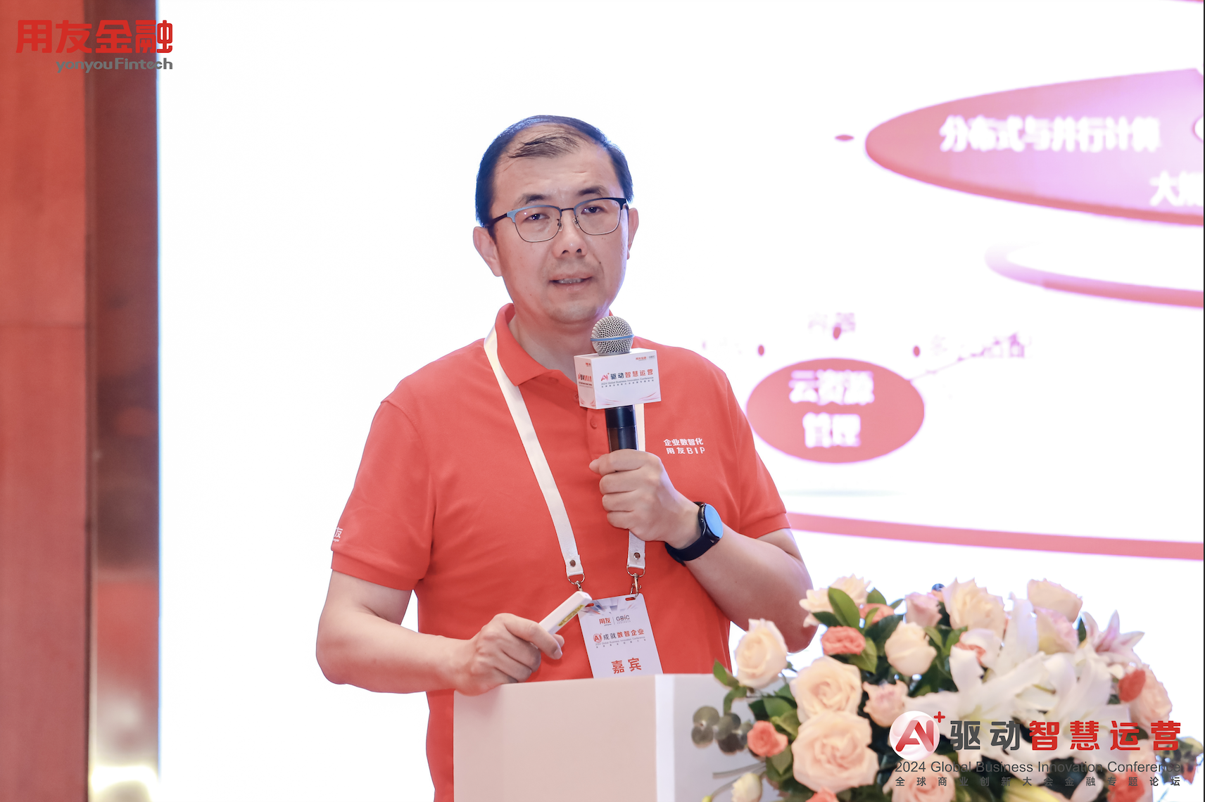 用友网络数智平台事业部高级专家刘然作《升级技术平台底座 释放数智新动能》的主题分享。他强调,新质生产力是创新起主导作用,需要摆脱传统经济增长方式及生产力发展路径,通过升级底座,构建智能运营、数据驱动、敏捷创新、集成连接四大能力,促进众多企业数智化转型升级。