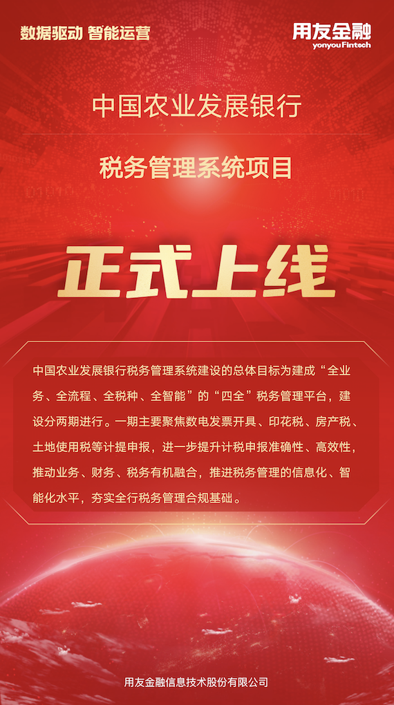 近日,中国农业发展银行(以下简称“农发行”)税务管理系统(一期)项目顺利投产上线。上线当日,系统成功通过对接国家税务总局乐企平台开具首张数电发票。税务管理系统上线为加强全行全面税务管理奠定了基础,是农发行在税务数智化转型上的一大突破,这标志着农发行作为国有政策性银行积极响应国家税收治理数智化变革发展趋势,在税务管理数智化转型道路上再度迈出坚实一步。