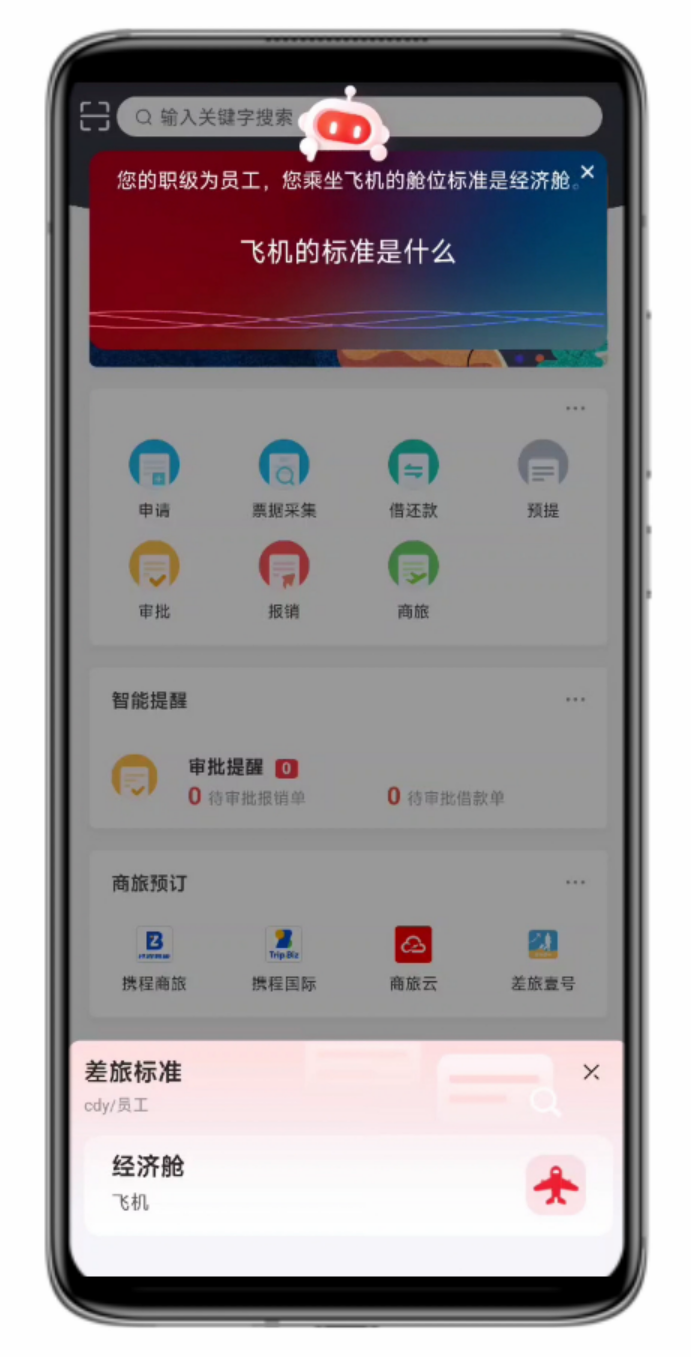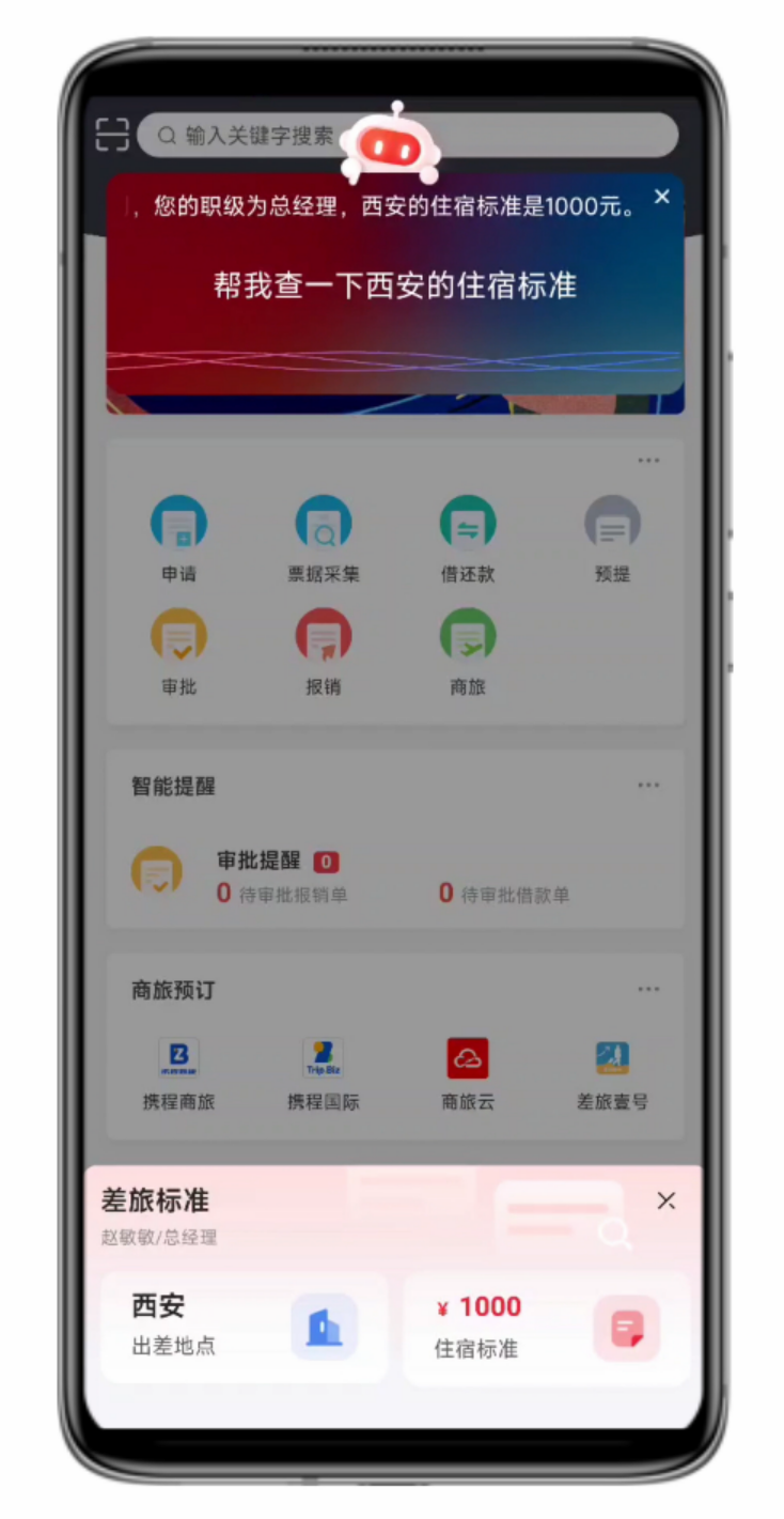 三期我们将推出智能商旅预订功能,通过语音对话自动预订商旅出行机票、火车票、酒店等,进一步提升小融业务能力,实现“一站式移动商旅和数智报销”。