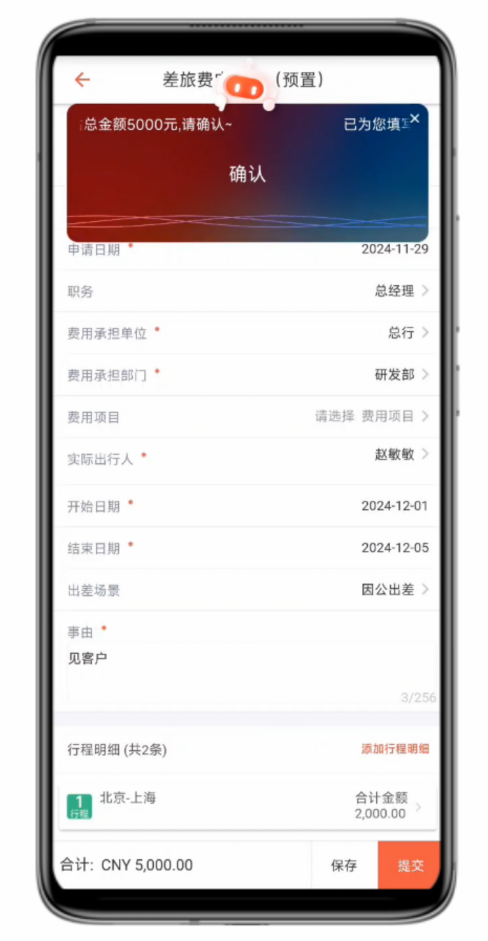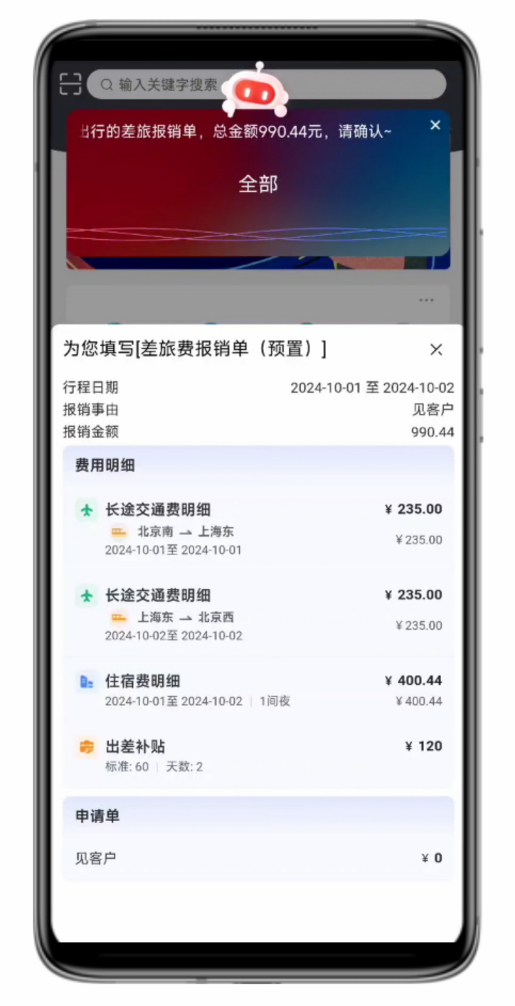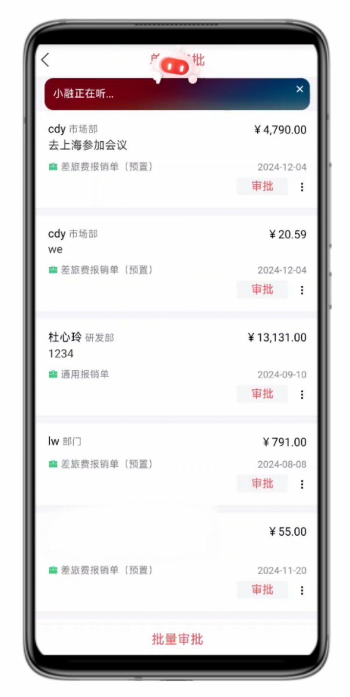 随着二期功能的推出,小融已具备智能语音填报申请单和报销单、查询报销标准等核心业务能力,通过语音交互实现费控报销流程的自动化和智能化,提升工作效率和用户体验。