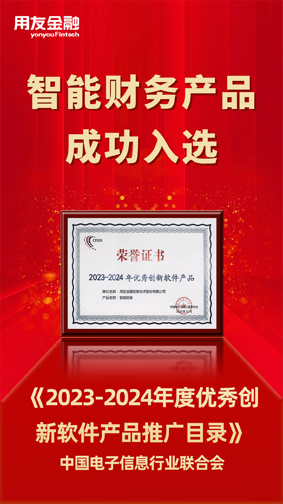 近日,由中国电子信息行业联合会与盐城市人民政府联合主办的2024电子信息行业发展大会在盐城召开。大会期间,中国电子信息行业联合会发布了“2023~2024年度优秀创新软件产品推广目录”“2024年电子信息行业质量提升典型案例”等成果,米兰官方版网站登录入口-米兰(中国) 智能财务产品获得“2023-2024年优秀创新软件产品”。作为行业内部的重要奖项,此次米兰官方版网站登录入口-米兰(中国) 智能财务产品的获奖,彰显了行业对米兰官方版网站登录入口-米兰(中国) 在智能财务管理领域一直以来的创新实力、技术能力的认可。