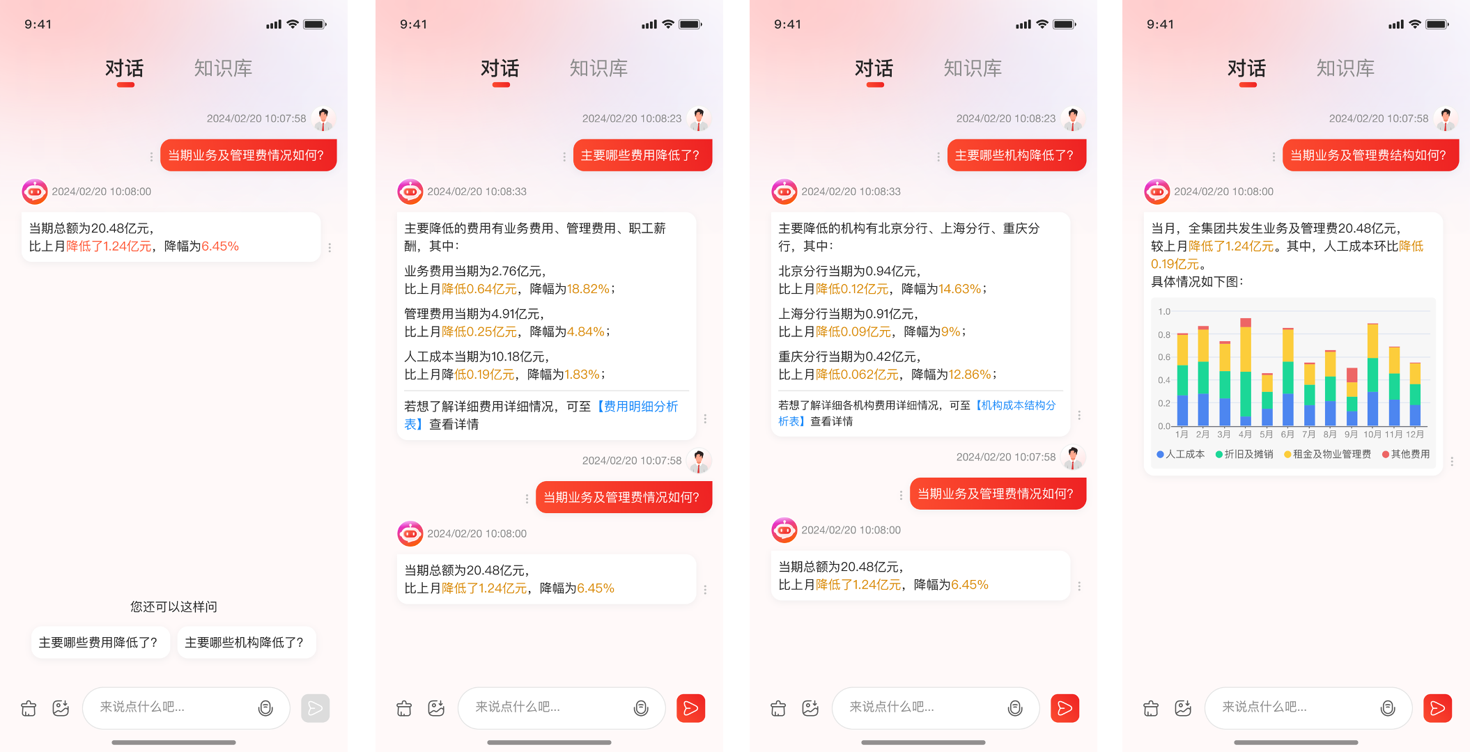 系统可以通过语音与财务数智员工进行多轮对话,查询报销进度、分析差旅行为、多维度展示差旅成本,协助业财管理人员洞察费用结构,挖掘成本优化空间。