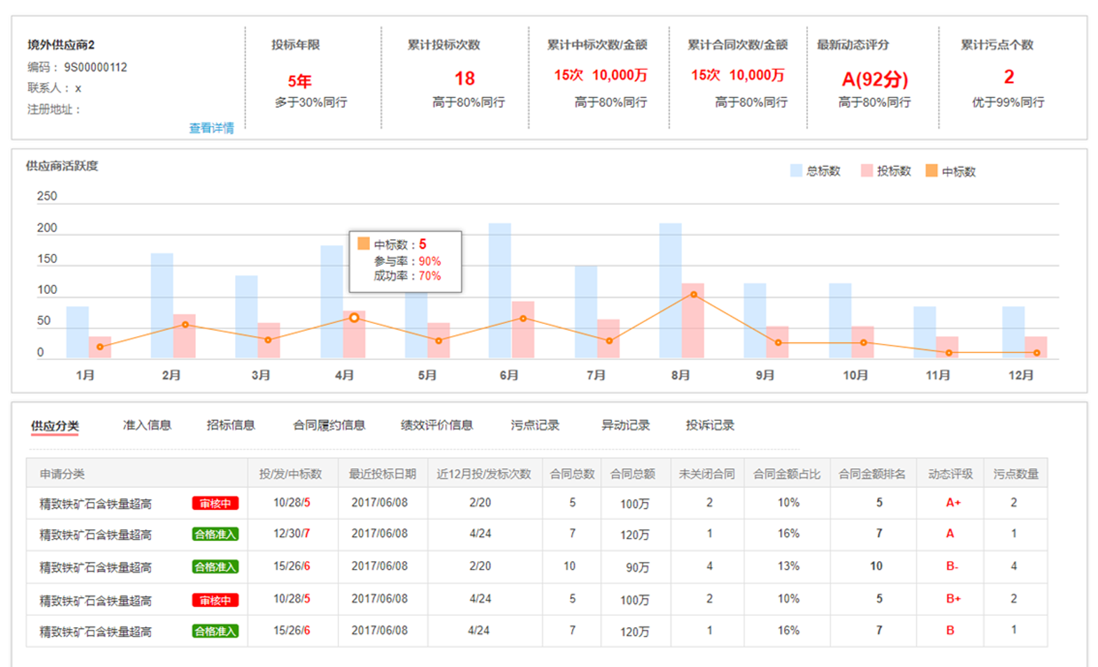 建立动态迭代的供应商绩效评价指标库,利用AI技术从内外部数据中采集供应商交易、信用、质量、履约等多维数据,对供应商绩效进行动态评价,基于评价结果,对供应商进行分类分级管理,智能匹配优质供应商,提供供应商合作策略建议。