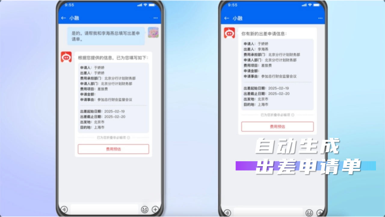 秒级解析需求,自动生成出差申请单并同步审批链。