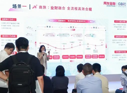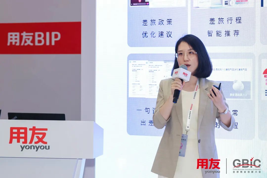 王琦媛详细介绍了用友在金融智能体领域的前沿实践,并以 AI + 商旅费控、AI + 审核、AI + 问数、AI + 组织赋能为具体案例,对上述四类核心场景展开了深度阐述。她同时提到,智能体的应用触角已广泛延伸至数字营销、采购、合同、税务等多个领域,由此构建起覆盖范围更广泛、协同更深入的智能生态。